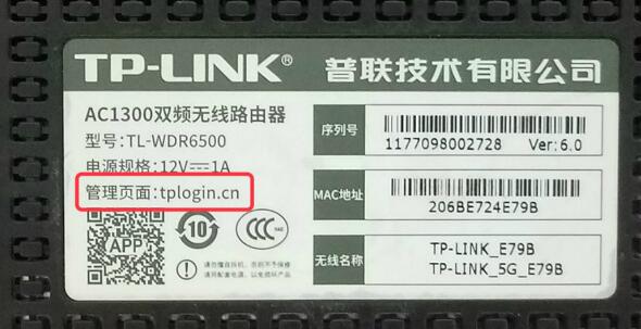 我们可以在路由器底部的铭牌上查看到路由器的管理页面地址,如下图: