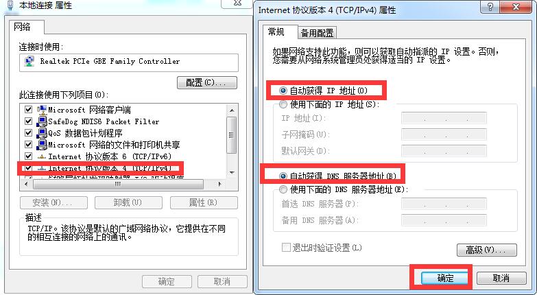 4. 单击“4 协议”,然后单击“属性”。选中上面屏幕截图中的框,然后单击“确定”。