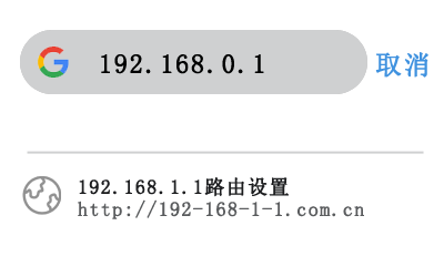 2;打开手机浏览器,如chrome、safari,在顶部网址框中输入路由器地址192.168.0.1