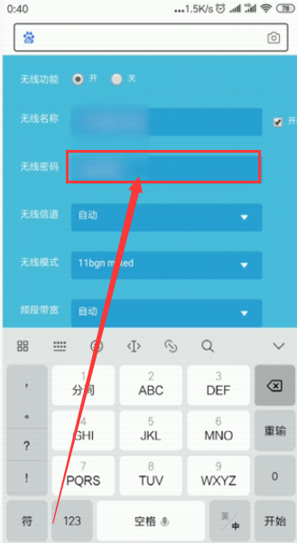 在右侧的无线设置信息中,找到【无线密码/无线名称】项目,填写【自己设定的密码或名称】。