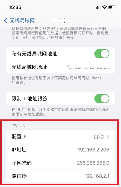 你也可以通过进入到手机的无线网络设置页面中已连接的wifi网络,查看网络详情页面,上面会有无线网络的IP地址、子网掩码、路由IP(默认网关)等信息。