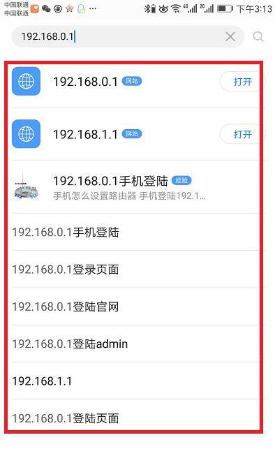 (2)、请勿在百度、360、UC、搜狗等的搜索框中输入192.168.0.1,在搜索框中输入是无法打开登陆界面的。
