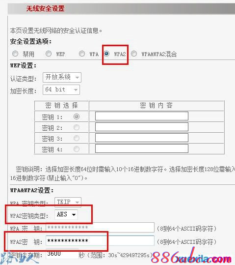 WPA/WPA2用Radius服务器进行身份认证并得到密钥的WPA或WPA2模式。在WPA/WPA2或WPA-PSK/WPA2-PSK的加密方式都一样包括自动选择、TKIP和AES。