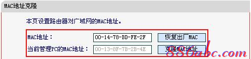 部分ISP会在给用户安装宽带服务时绑定用户的电脑网卡的物理地址(即MAC地址),只有被绑定的电脑才能通过PPPOE拨号上网,其他电脑或路由器都无法拨号,在路由器上,这个问题的解决办法是:用单机可以拨号上网的电脑管理路由器,进入路由器管理界面――网络参数―MAC地址克隆,将被绑定的电脑(单机可拨号的电脑)的网卡的MAC克隆到路由器上即可。