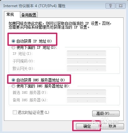 如果显示路由器连接正常,但我们通过浏览器还是等不了路由器,我们可以试着更改一下本地连接的IP地址,让IP地址进行自动获取!由于小编的电脑是WIN7系统,我们打开本地连接然后查看属性!把IP和DNS都改为自动获取!