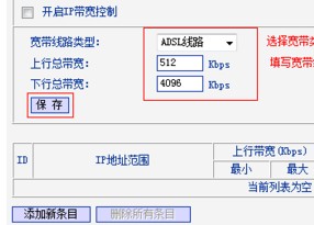 上行总带宽填写512,下行总带宽填写4096,点击 保存。如下图: