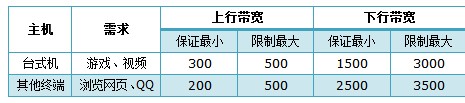 用户线路为4M ADSL线路,上行带宽为512Kbps,下行带宽为4096Kbps。结合用户需求与总带宽,分配规则如下: