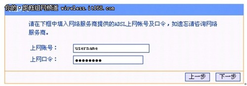 若是您明白知道你家的上彀体例是PPPoE,即ADSL虚拟拨号体例,那末就选择此项。ISP也就是你的宽带办事商会给你供给上彀帐号和心令,则您需要鄙人图所示页里中输进ISP供给的ADSL上彀账号和心令,以下图所示: