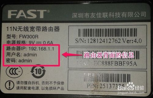 我们首先查看一下是不是你输入的路由器登陆地址有错误,因为有些路由器是192.168.1.1进行登陆,而有些路由器可能是其它的登陆地址比如192.168.0.1等等,那么我们如何查看路由器的登陆地址呢?我们可以在路由器的背面找到你路由器的登陆地址以及登陆的账号和密码!下文小编假设你路由器的地址默认是192.168.1.1进行,如果你的路由器不是这个登录地址,你可以把本文所用地址替换为你的路由器默认地址进行操作!