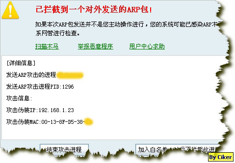 图一,防火墙拦截了我本机发出的真实ARP信息(IP:192.168.1.23):