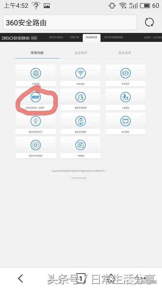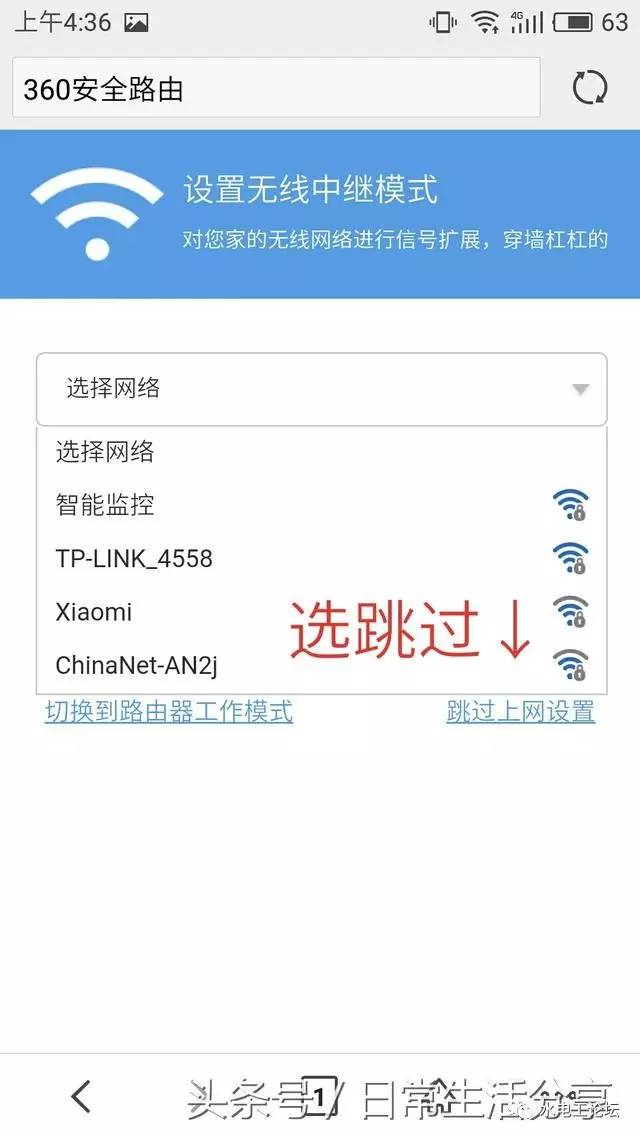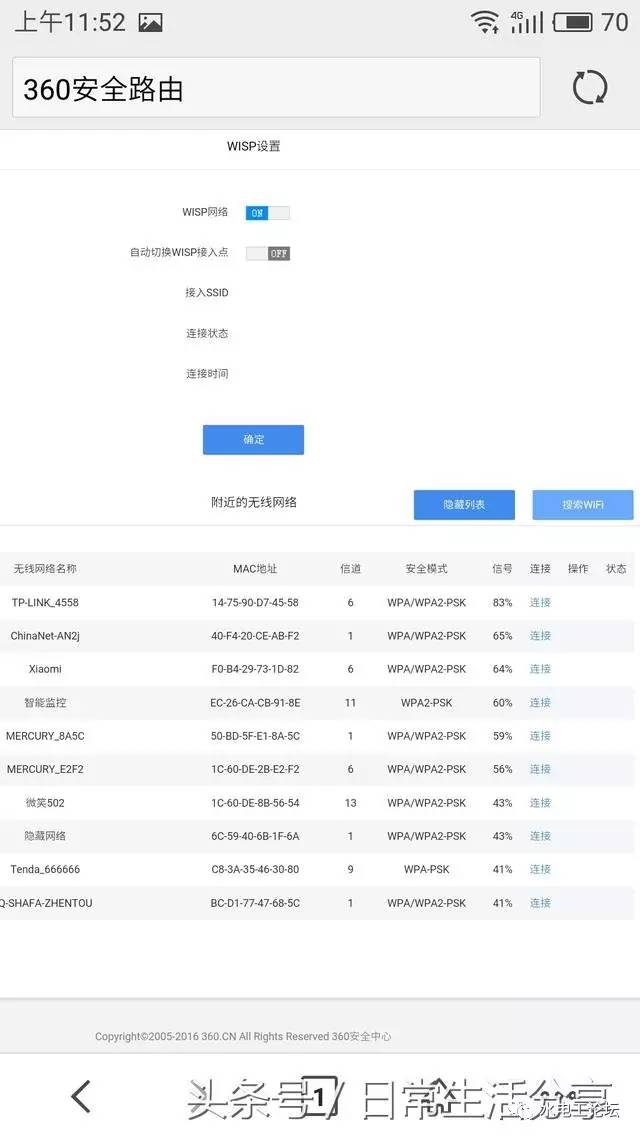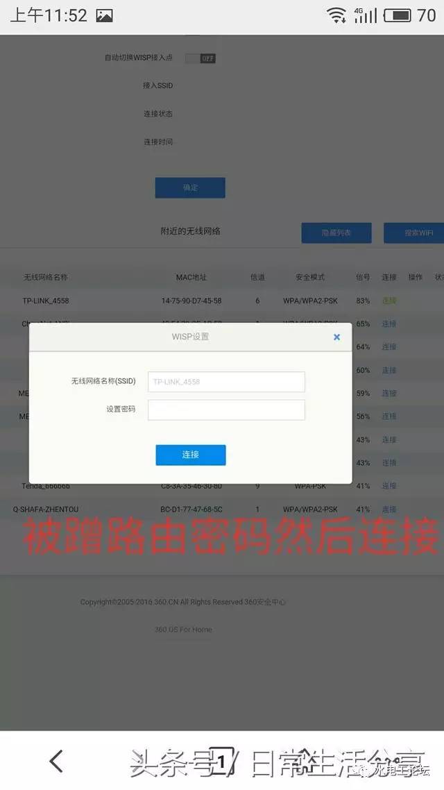 前段时间因为城中村三线改造断网了,短时间还不能恢复,中国移不动的4G信号在我们这里又不好。每次回到家没有网络真的难过。用手机搜索在窗台可以搜索到对面商场的wifi,用万能钥匙还可以连接,但只有在窗台有,总不能一直趴在那里吧,所以想到了我的360安全路由器mini。来个无线中继就可以了。用微信提取了wifi密码开始设置。