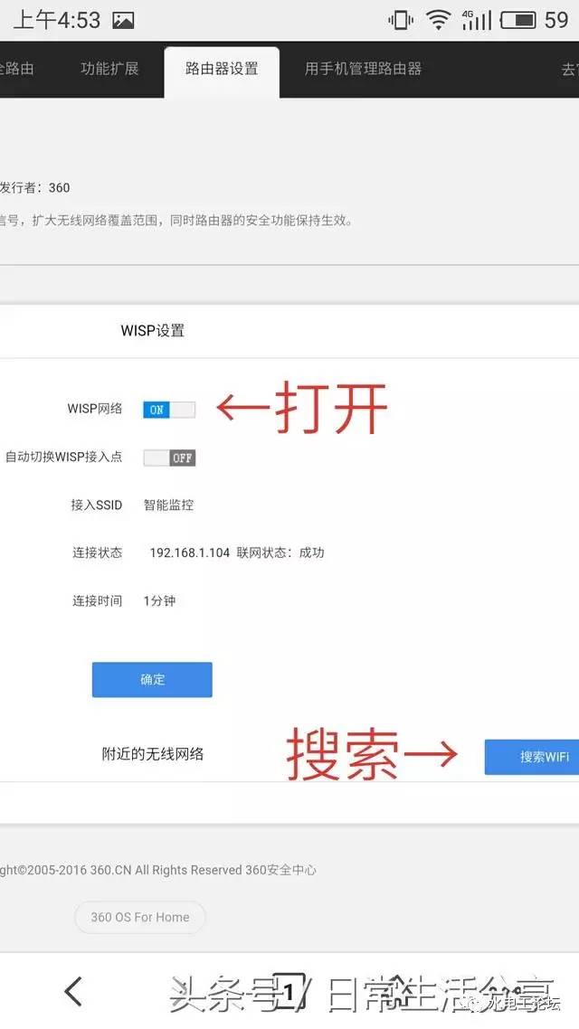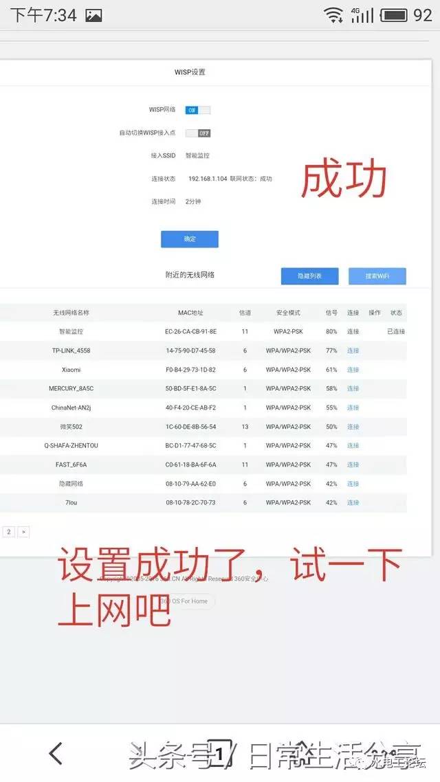设置成功可以上网了,每一步都有图片非常清楚了。这种方法也适合办公室酒店楼房等地方的无线扩展,说白了也就是无线中继。网上有很多教程但都好复杂。用智能路由器设置的好处是不怕什么ip冲突,什么信道问题,都不用自己设置。如果同时有几个wifi可以连接的话,可以多连接几个,再打开自动切换接入点开关,会自动切换网络好的wifi。还可以下载APP管理路由器哦。
