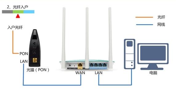 2、光钎上网用户:用户需要准备2根网线,其中一根网线用来连接光猫与D-Link DIR 605路由器的WAN接口,另一根网线用来连接计算机与D-Link DIR 605路由器的LAN接口(1/2/3/4中的任意一个都可以)。