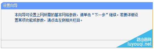 进入路由器的管理界面后,点击 设置向导,点击 下一步。