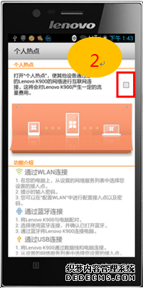 2) 通过“个人热点”分享手机移动数据连接上网,手机耗电量将增加,请留意电池电量;