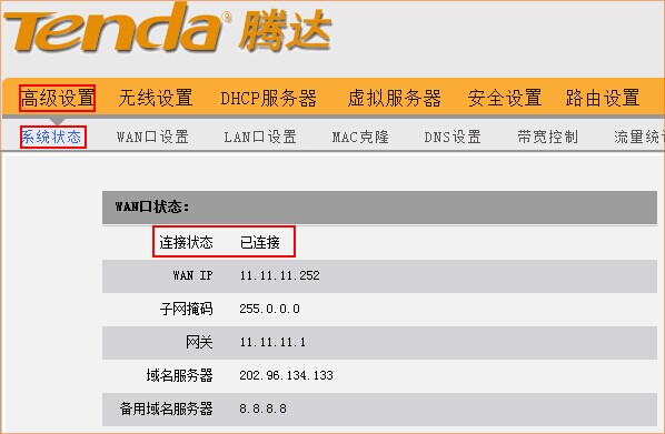 如果WAN口状态显示“已连接”,就可以浏览网页,上网冲浪了。