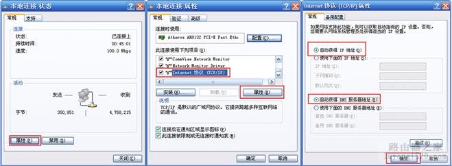 经过上面的配置后,您的电脑就会自动向路由器"索要"IP地址,路由器也会在接收到请求后分配参数给电脑,成功后点击电脑右下角的小电脑图标,在本地连接状态的"支持"选项卡里可以看到电脑获取的参数,如下图(以XP系统为例):