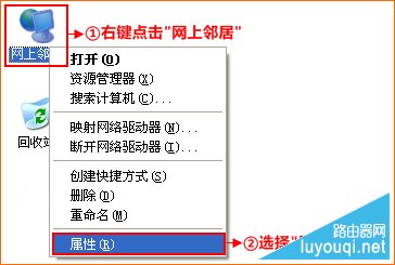 右击桌面网上邻居→选择“属性”→在网络管理侧边栏选择“管理网络连接”,