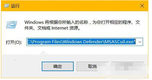 2、有另一种方法,就是打组合键Win+R弹出运行框,在输入框里输入命令“C:/Program Files/Windows Defender/MSASCuil.exe”再点击确定按钮。