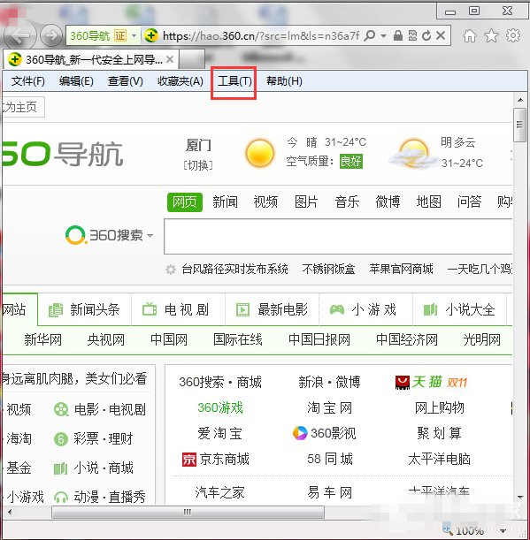 1。打开浏览器,然后单击命令栏中的工具下拉列表: