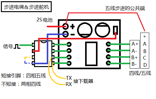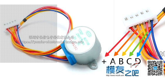 有人不知道五线的步进电机怎么接,以这个电机为例,一般红色为公共正极,ABCD顺序往下数就可以了