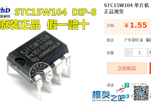 1,STC15W104 单片机(不再推荐使用15F104W,虽然兼容。很多人制作有刷电调出问题,追问后发现都是用的15F104W。芯片本没错,但很多人电源做不好,会使单片机经常重启。所以以后只推荐使用宽电压的15W)