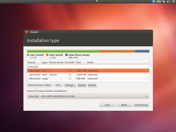 4. Ubuntu 分区推荐方案在安装之前,我们先分析一下 Ubuntu 桌面系统的分区方案。要了解分区方案,先从 Linux 系统的目录结构说起。使用 Windows 系统的用户都知道,Windows 系统先有分区的存在,然后在不同的分区下创建文件目录结构。于是我们看到诸如 C:Windows D:Downloads 之类目录,也就是说每一个目录首先是存在于某个分区的。Linux 系统则相反,它首先确定有目录的存在,例如:/, /usr, /media/usb,/media/cdrom, /disk 然后才确定这个目录上挂载的是哪个分区(甚至挂载的可能是CDROM, USB等外设以及ISO光盘镜像文件:类似 Windows 下虚拟光驱的作用)。访问某个目录,实质上就相当于访问挂载在这个目录上的分区,外设或者光盘镜像文件。我们在 上一篇 博客中提到过一个系统存储重要数据的目录: /home 目录, 在通常的最佳实践中,可以把这个 home 目录作为一个单独的挂载点,挂载一个独立分区。这样做有几个好处:系统分区如果损坏,幷不影响到 /home 分区所在的数据。这些数据通常非常重要,包括有你常用的软件,重要的文档以及各类软件的配置信息,反过来我们也鼓励把重要的数据存放在 /home 目录下,使得他们保存在系统分区以外的分区,避免因为系统的问题受损。在重装系统,或者升级系统以后,/home 分区的数据可以得到保留,最大程度的避免了软件安装和重新配置的耗时工作。在日常备份的工作中可以选择只备份 /home 分区所在的数据,避免做全盘的备份。我自己就曾经因为在两年前安装Ubuntu 10.04的时候只分了一个分区,把 /home 目录下的数据和系统文件存储在了同一个分区下,导致在安装Ubuntu 12.04的时候,在没有第二个分区和第二台电脑用来备份/home目录数据的情况下,忍痛将整个系统连同/home目录里的数据全部格式化,损失惨重, 教训深刻。所以一般来说一个 Ubuntu 的系统在安装之初应该有三个分区,他们分别是挂载于根目录: /, home目录: /home 的两个分区以及 swap 分区。swap分区是指虚拟内存的交换区,一般设置为实际内存容量的两倍大小即可。假设你有一台500G硬盘,2G内存的PC,那么比较好的分区分配方案是:根目录所在分区分配50G左右, swap分区分配4G,剩余空间全部留给 /home 所在分区即可。5. 安装注意事项在安装之前,记得备份本机重要数据。在电脑上插入启动U盘后,选择从U盘启动计算机:大多数电脑可以在出现启动画面的时候按F12选择启动媒介,此时选择U盘即可。之后一路安装 Ubuntu 会比较顺利,但是以下几个地方仍然需要注意:在 Installation type 界面选择 Something else 选项,这样你才有机会调整,保留现有分区以及分区上的数据,并将多个分区挂载到同一个系统的不同挂载点(上文所述的根目录和home目录)【推荐】。选择 ext4 文件系统格式作为 Linux 的文件系统格式。三个分区大小可按上个小节分配,根目录分区大小不必过大,50G至多,如果硬盘本身不大,只分配15G问题也不大。大多的数据应该存放在 /home, 因此 /home 所在分区应该足够大。Installation type 界面中 Device for boot loader installation 选项列表中记得选择硬盘所在条目一般是:/dev/sda,笔者安装 12.04 时因为不慎选择了 USB 所在媒介:/dev/sdb 导致安装完毕后只有插着USB才能启动系统,悲剧!大致的效果图如下(忽略分区尺寸一项,随意填的)