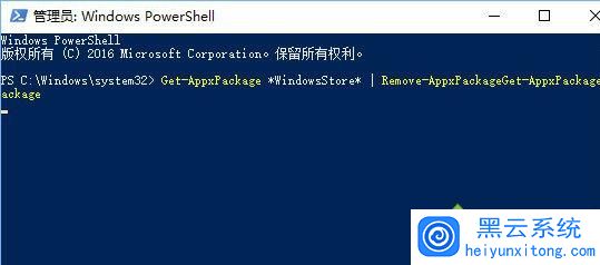 2、可以看到已经进去了PowerShell,在PowerShell中,输入“Get-AppxPackage *WindowsStore* | Remove-AppxPackage”,按回车键;