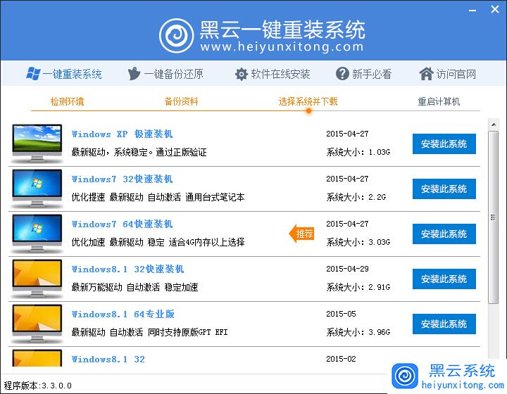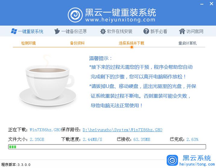 黑云一键重装系统新版增加数据备份功能