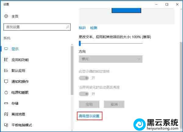 2、点击显示设置最底部的“高级显示设置”;如图所示: