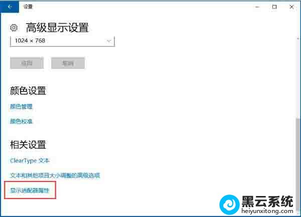 3、继续点击高级显示设置最底部的“显示适配器属性”;如图所示: