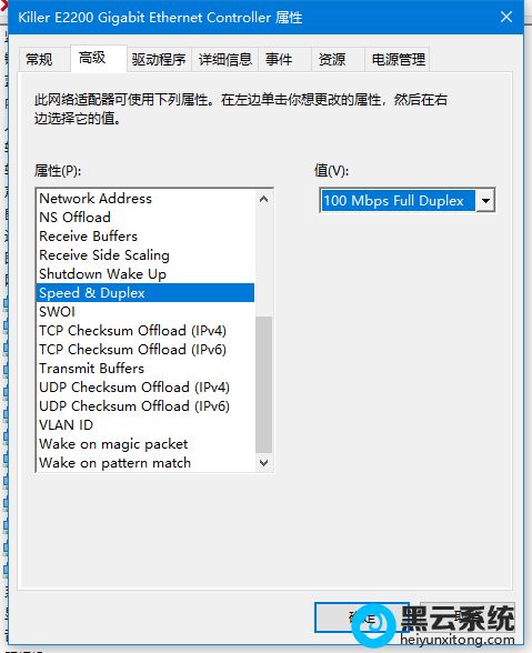 2.???????在设备管理器中双击网卡,在高级选项卡中,将双工修改为100Mbps全双工