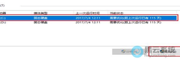 5、进入优化界面之后使用鼠标选中需要优化的磁盘,然后点击右侧的优化按钮进行优化即可!完成之后电脑中的资源管理器打开速度一定会加快的。