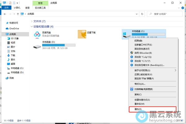 3、找到C盘之后使用鼠标右键单击,打开它的属性设置界面!进入之后将最上方的选项卡切换为“工具”选项一栏;
