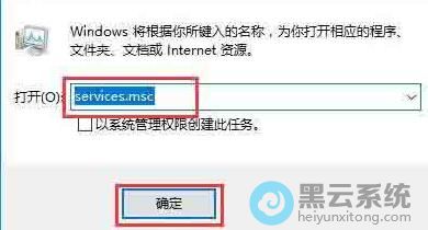 3、这时会打开Win10的运行窗口,在窗口中输入命令services.msc,点击确定按钮;