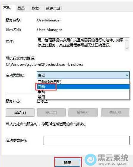 7、再点击启动类型下拉菜单,在弹出菜单中选择“自动”菜单项,最后点击确定按钮,这样再运行edge浏览器时,就不会弹出没有注册类的提示了。