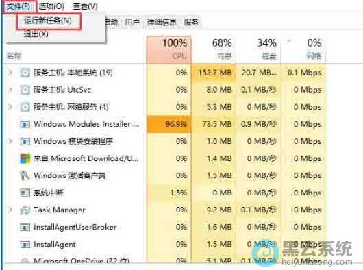 2、在打开的任务管理器窗口中,依次点击“文件/运行新任务”菜单项;