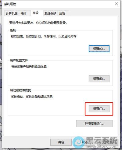 2、在弹出的系统属性界面中,在高级选项卡之下单击启动和故障恢复里的设置按钮;
