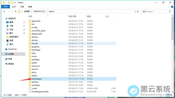 3.找到一个叫【Steamapps】的文件夹,双击打开文件夹进入下一级;