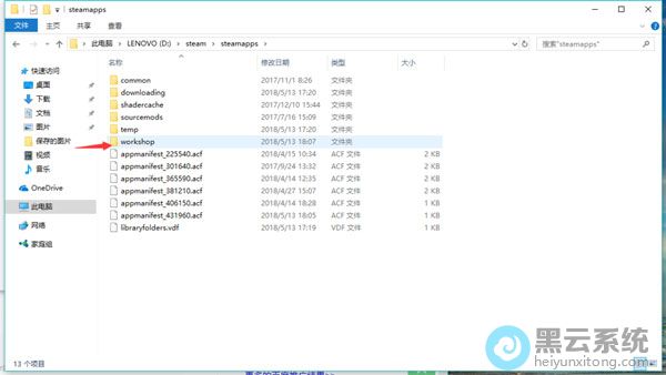 4.接着在steamapps文件夹内找到【workshop】文件夹,双击打开;