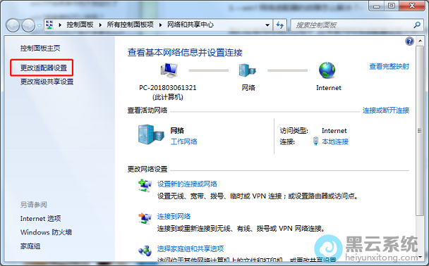 2.打开“更改适配器设置”;