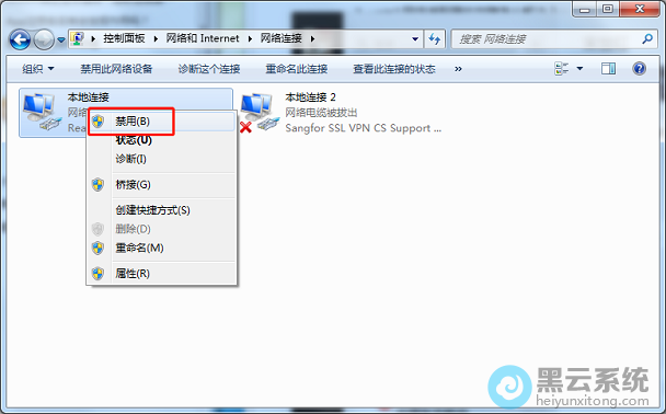 3.右击本地连接,选择“禁用”;