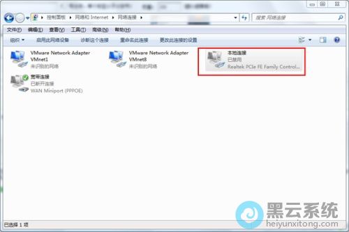 5.此时会打开如下界面,可以找到“本地连接”的图标,此时我们可以看到本地连接显示为“已禁用”的状态,所以会出现网络连不上等一系列网络问题,选择本地连接使用鼠标右键后选择“启用”即可让网络恢复启用