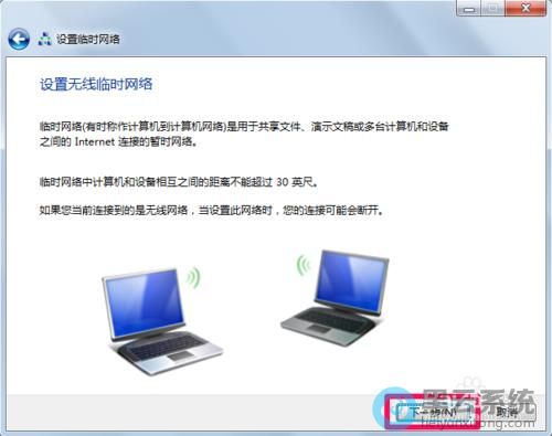 这时会出现设置临时无线网的说明,直接点下一步就可以了。