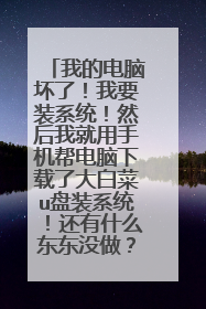 我的电脑坏了!我要装系统!然后我就用手机帮电脑下载了大白菜 u盘装系统 !还有什么东东没做?还要去下载 系统U盘制作及重装系统的操作步骤为: 1).