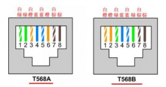 网线做法有两种国际标准,分别是EIA/TIA568A和EIA/TIA568B。两种标准对应的线序如下: 正确查看网线线序的方法为:水晶头弹片朝下,且有水晶弹片的一