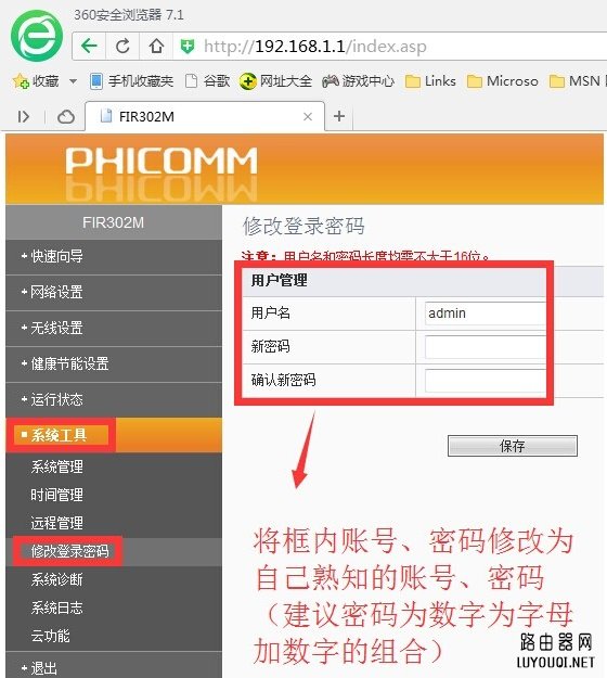 Ps.您可以将登陆账号密码改成自己熟悉的账号和密码即可。比如用户名改成luyouqi,密码改成www.luyoupro.com,修改之后,其他蹭网者或者黑客,就很难登陆路由器了。