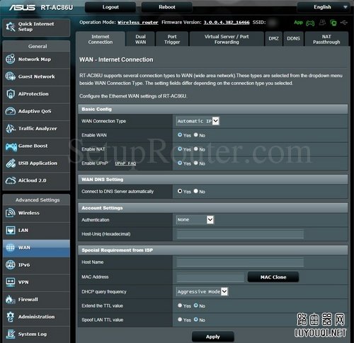 查找你的华硕RT-AC86U路由器登录地址: