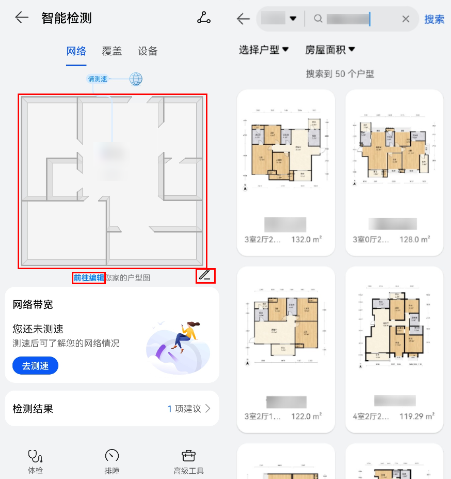 3. 点击智能检测(或网络 > 智能检测),也可点击户型图,即可前往智能检测页面。