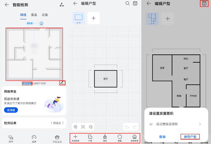 首次进入智能检测界面,需要先按照您家中的实际户型编辑户型图。